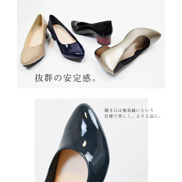 走れる パンプス 痛くない ストレッチ エナメル 太ヒール 長時間 疲れない 黒 SUaSHI 歩きやすい チャンキー 幅広 通勤 入学式 (FOO-MG-R7751W)