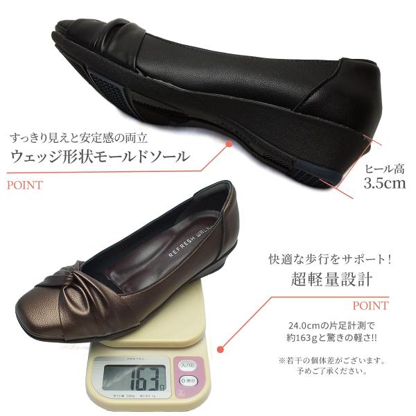 REFRESH WALK リフレッシュウォーク パンプス コンフォート 4E 幅広設計 超軽量 ウェッジソール ツイストリボン 外反母趾 高屈曲 防滑 フォーマル オフィス 爆買