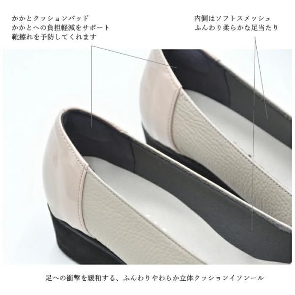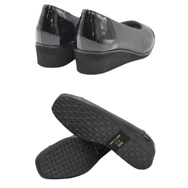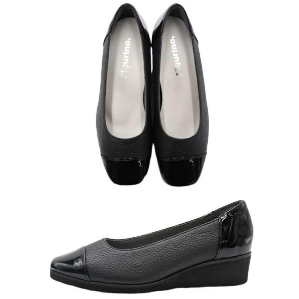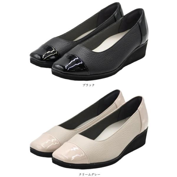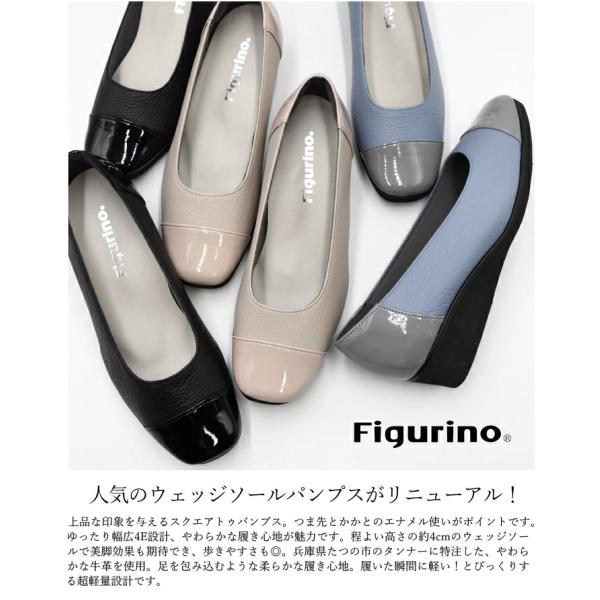 Figurino フィグリーノ エナメルコンビ ウェッジソールパンプス 幅広 4E 本革 FT-30 日本製 軽量 甲高 ワイズ ゆったり リラックス レザー 牛革 レディース 靴
