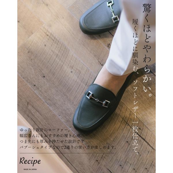 日本製 レザー 本革 ローファー フラットシューズ ローヒール ぺたんこ 靴 くつ 柔らかい 痛くない 軽量 外反母趾 レディース recipe レシピ ブラック ホワイト