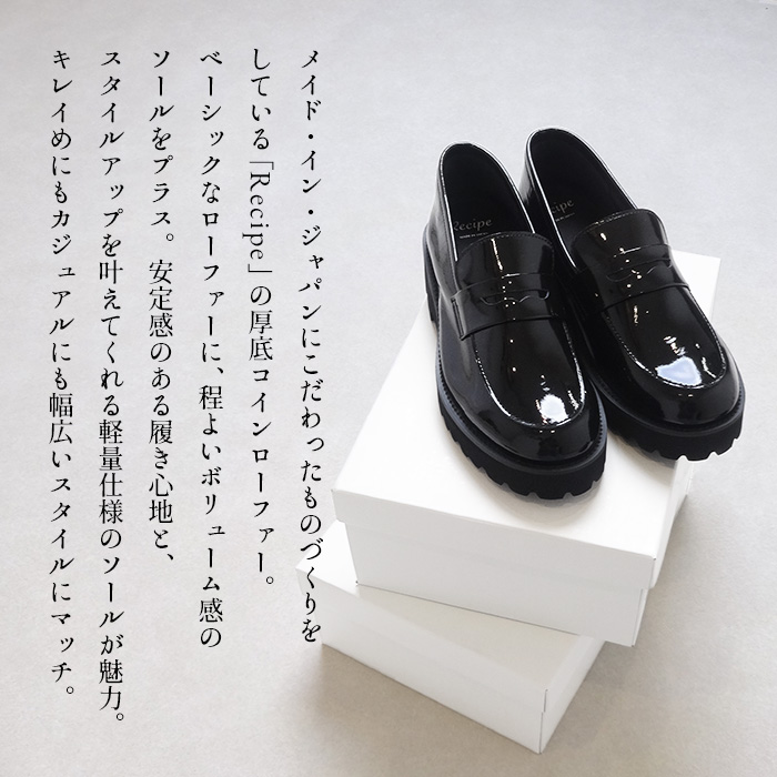 レシピ 靴 recipe 厚底ローファー レディース シューズ 40代 50代 本革 厚底コインローファー RP-568 2E相当