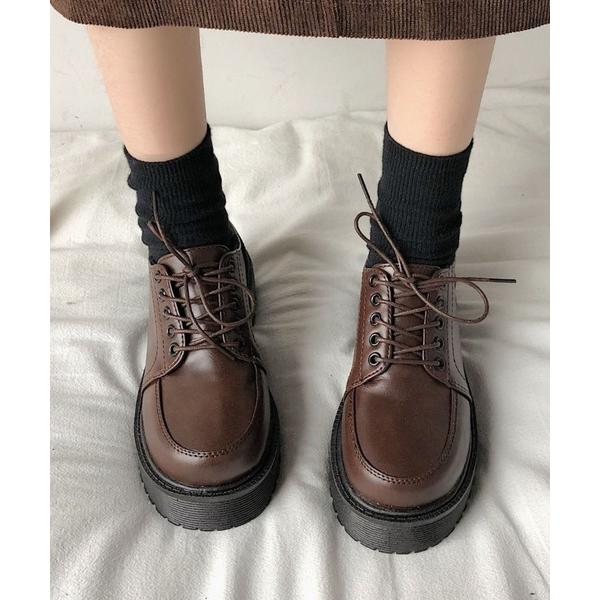 ローファー 厚底レースアップローファー レディース
