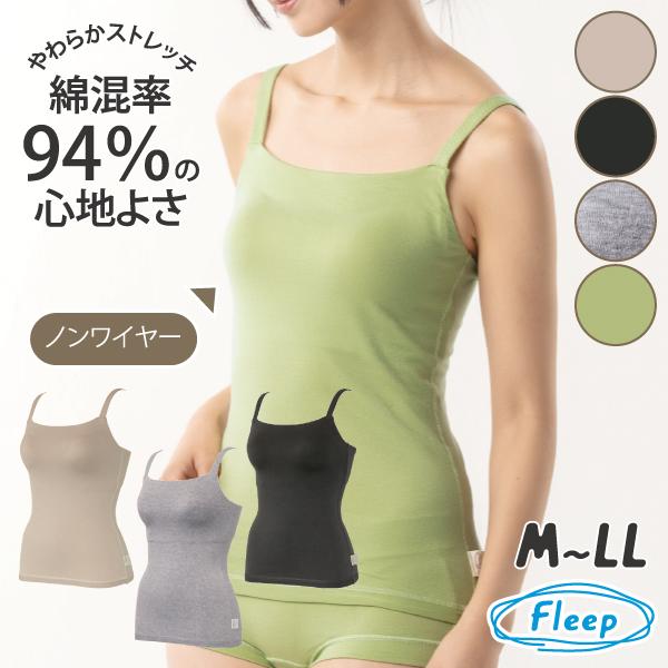 WEB限定品 コンフォート ブラキャミ カップ付き Fleep フリープ 綿混 綿ベア天 ブラトップ スポーツ リラックス ストレッチ 日本製 ネコポス可 87018 M L LL