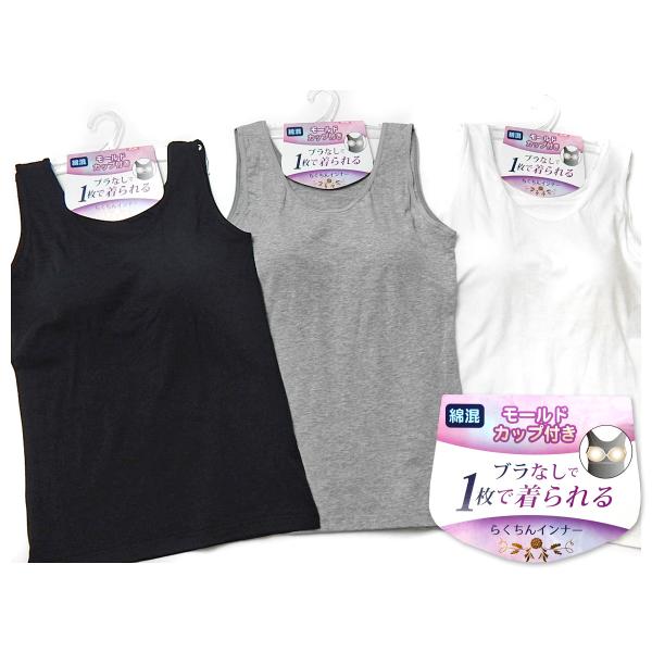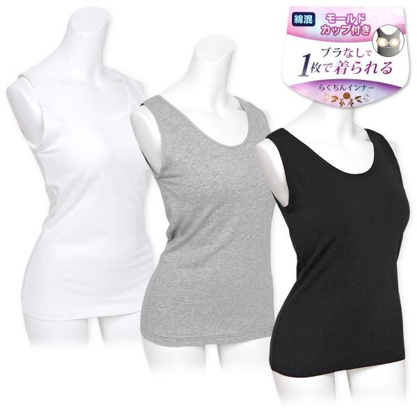 送料無料 婦人 レディース ブラなし1枚で着られる ブラトップタンク モールドカップ付き 綿混 M L LL a-2112 メール便対応