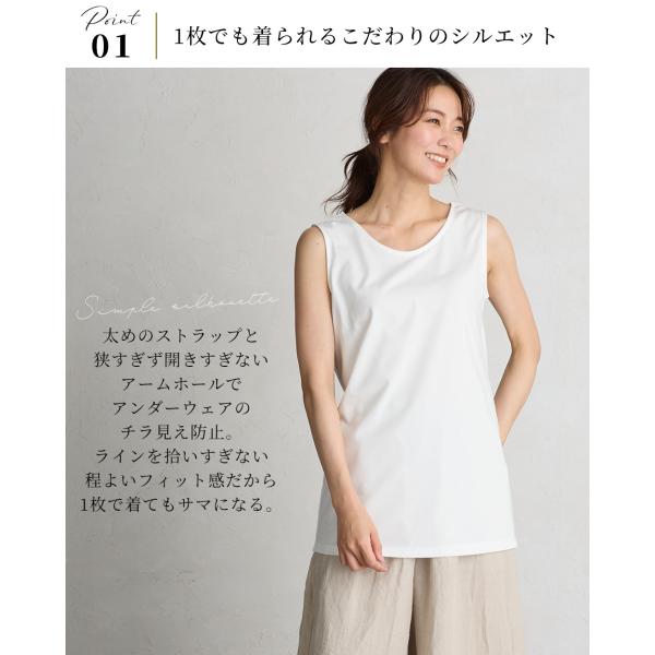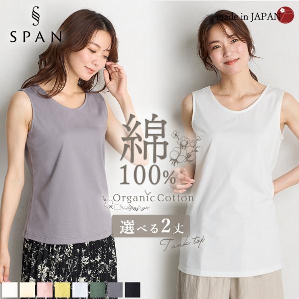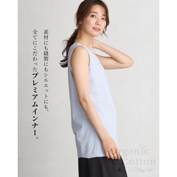 タンクトップ レディース 大きいサイズ インナー ロング ブラ紐隠し チラ見え防止 接触冷感 コットン 綿 日本製 オーガニックコットン
