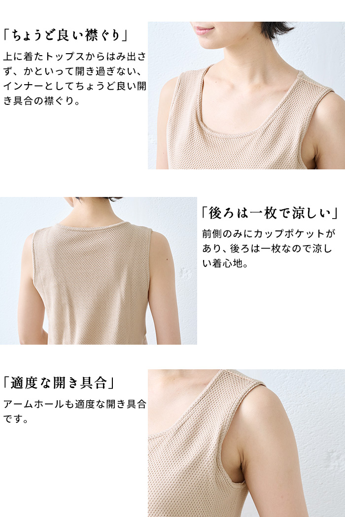 カップ付きタンクトップ ブラトップ カップ付きインナー 綿 日本製 コットン100% メッシュ編み カップ付き タンクトップ