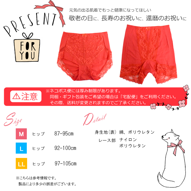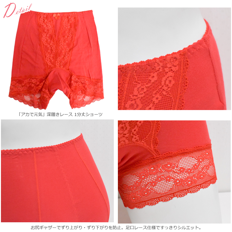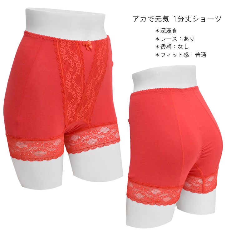 【2点以上お買い上げで送料無料】 赤いショーツ レディース アカで元気 1分丈 1-1303 赤パン 還暦祝い 赤いパンツ 女性下着 プレゼント(01390)