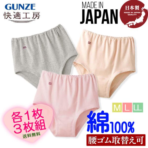 送料無料<3枚組> GUNZE 日本製 綿100% 快適工房 ゆったりとした着ごこち ショーツ 抗菌防臭加工 婦人肌着 ゴム入替可能 グンゼ 【M/L/LL】【9810】