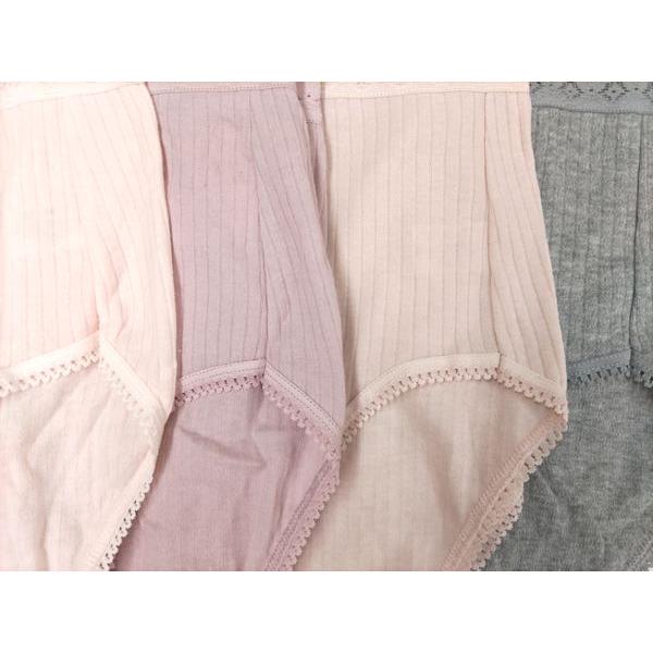4枚組 ショーツ 綿100% パンツ お腹すっぽり 針抜き編み 深め丈 丈長 ゆったり ショーツ レディース 婦人 無地
