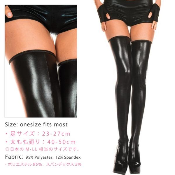 Music Legs 艶やかなウェットルック エナメルレザー風 サイハイ ストッキング