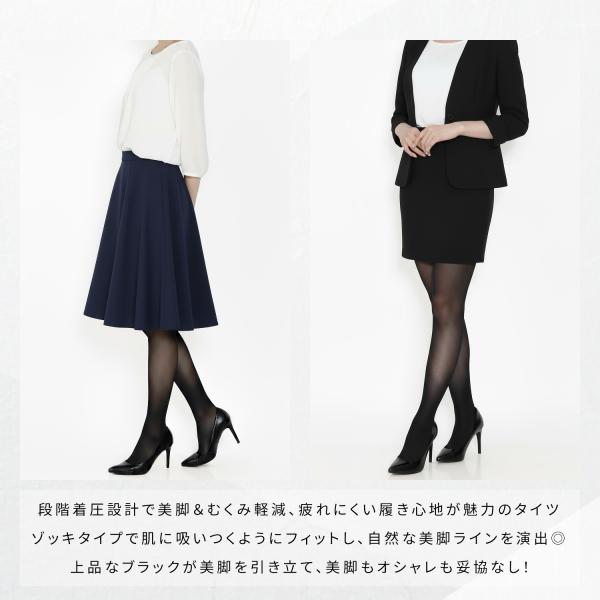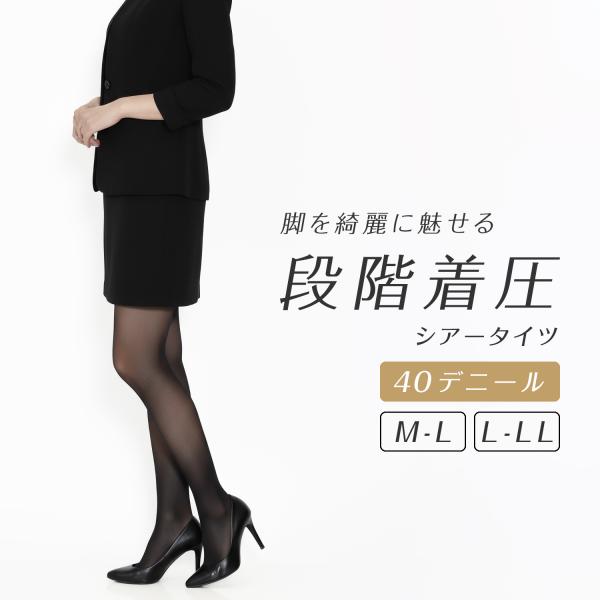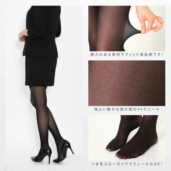 ソフト段階着圧設計 40デニール ブラック タイツ ゾッキ つま先スルー 無地 黒