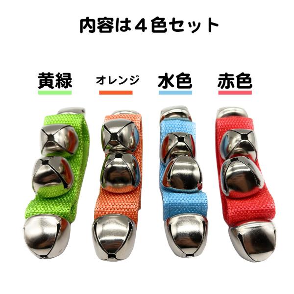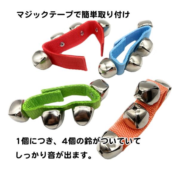 4個セット リングベル ハンドベル 幼児 子供 手首につける鈴 赤 青 オレンジ 緑 マジックテープ 送料無料