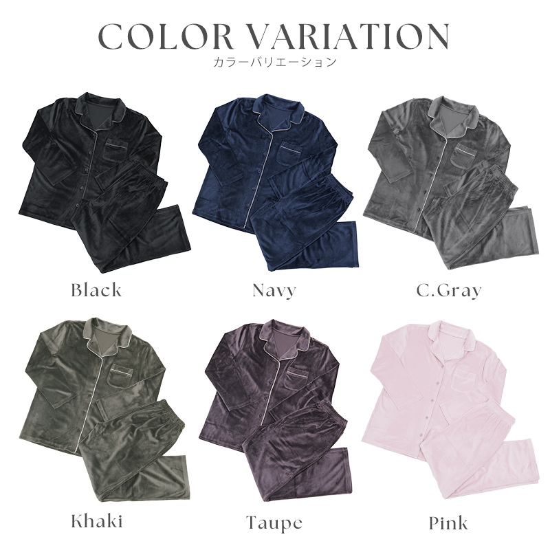 ルームウェア レディース 冬 長袖 パジャマ 前開き 春 秋 セットアップ 上下 ロングパンツ ベロア しっとり シャツ 青 黒 グレー ピンク カーキ 紫 入院 2025年