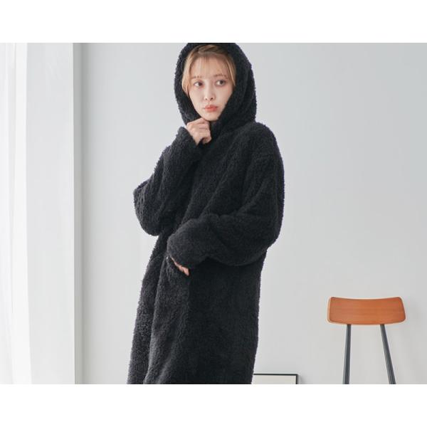 パジャマ レディース 冬 ワンピース ルームウェア 長袖 パーカー モコモコ 秋 暖かい ゆったり ロング丈 黒 グレー 2025年