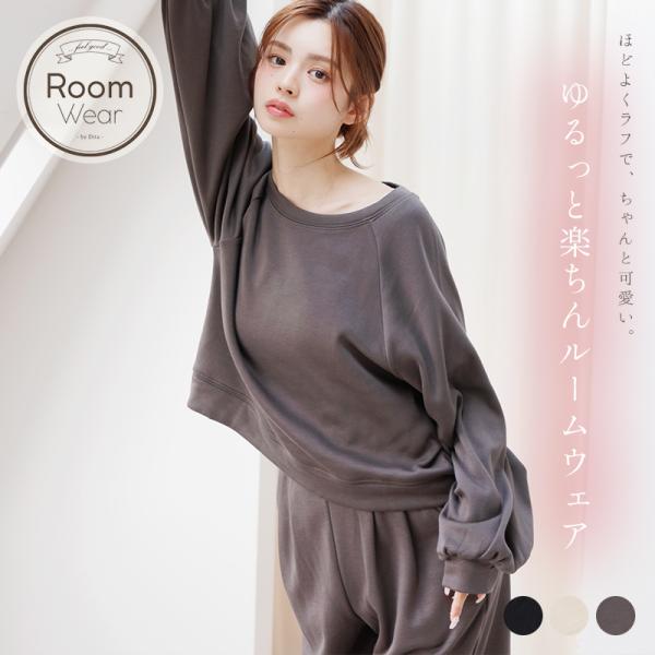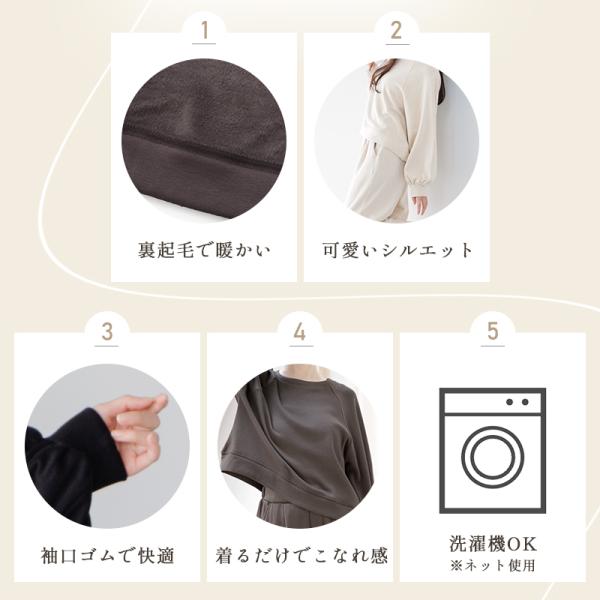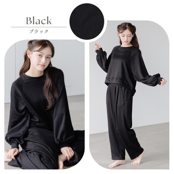 ルームウェア 裏起毛 パジャマ レディース 長袖 冬 部屋着 ふわふわ 襟なし ボタンなし ペア 上下 セット スウェット トレーナー 黒 白 新作 2025年