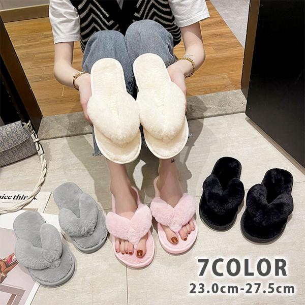 [1014円!クーポンで!]スリッパ サンダル ファースリッパ トングサンダル ルームシューズ フェイクファー ふわふわ もこもこ [郵3] ^bm1551^