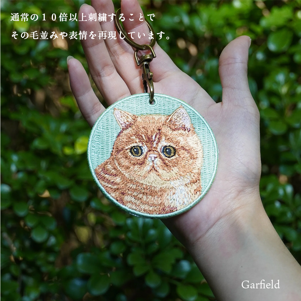 キーホルダー 猫 刺繍 ネコ ネコ柄 チャーム ペット ガーフィールド 黒猫 くろねこ ハチワレ トラ猫 ブリショー スコティッシュフォールド グッズ