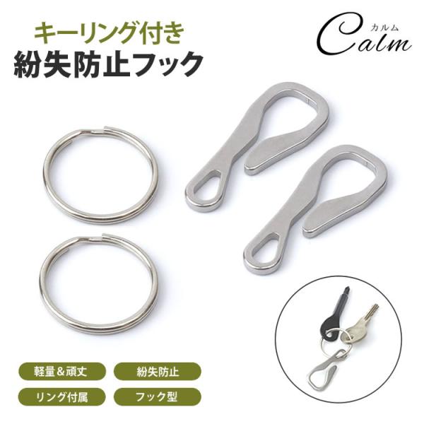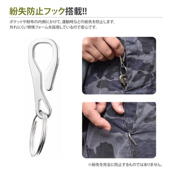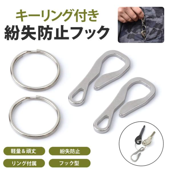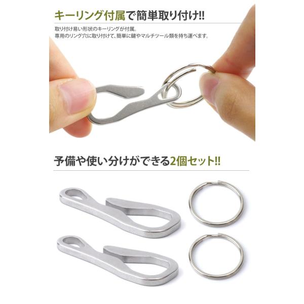 キーリング フック ステンレス 2個 セット 薄型 コンパクト 軽量 アウトドア 鍵 マルチ シンプル 作業 ステンレス メンズ スリム 紛失防止