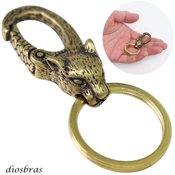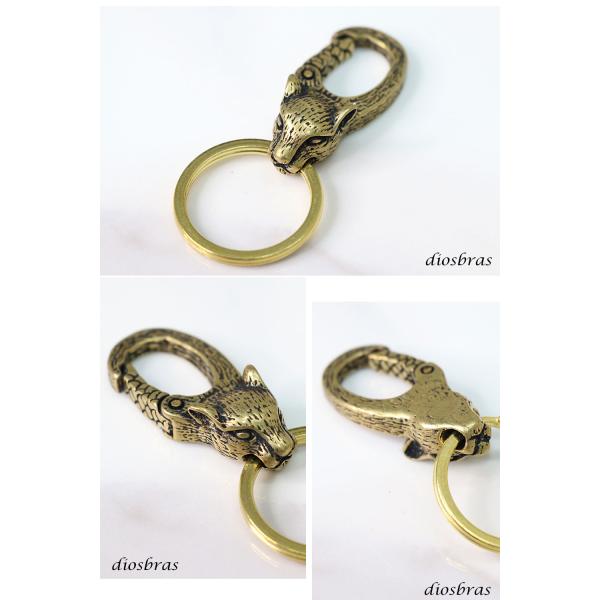 キーホルダー キーフック キーチェーン ゴールド チーター 黒ヒョウ ヒョウ 真鍮 ブラス キーホルダー