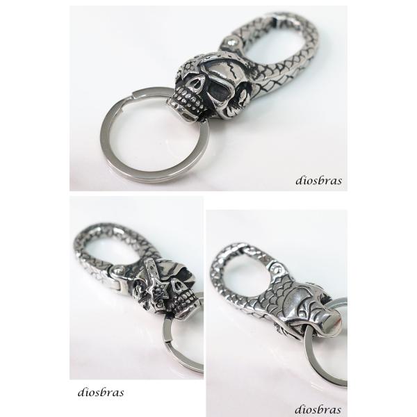 キーホルダー キーフック キーチェーン シルバー スカル ドクロ 骸骨 髑髏 亜鉛合金製 キーホルダー
