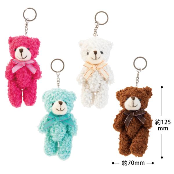 モコモコ クマ キーリング付 マスコット ピンク ブルー ホワイト ブラウン 誕生日 ぬいぐるみ キャラクター アニマル 動物