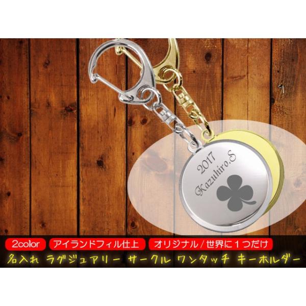 ワンタッチ キーホルダー ラグジュアリー サークル 名入れ 刻印 オリジナル キーリング ネーム プレート