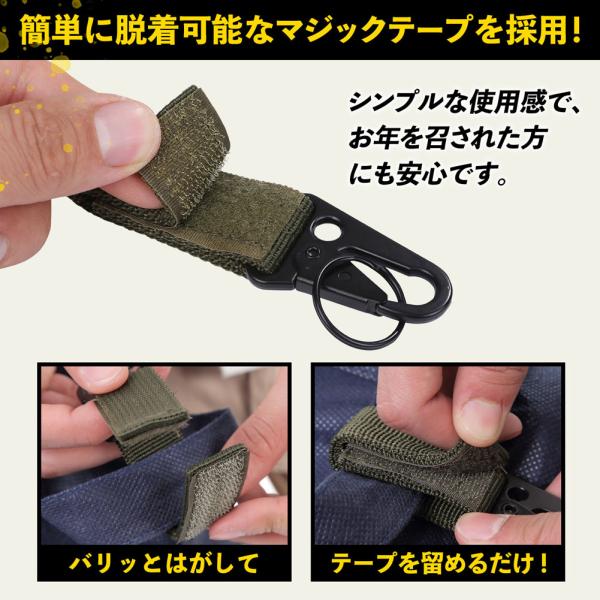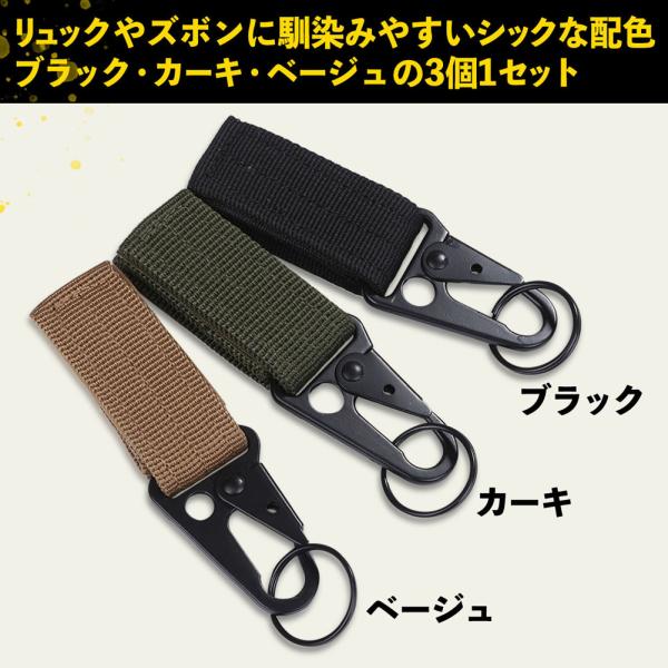 キーパーホルダー キーリング キーチェン マジクテープ付き 多機能 アウトドア サバゲー 登山 ナイロン 3個セット