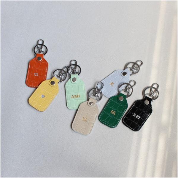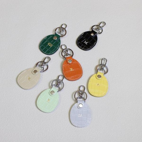キーリング 名入れ キーホルダー 革 エアタグ ケース 刻印 本革 レザー アルファベット イニシャル AirTag ネームタグ ポイント利用 巾着バック付