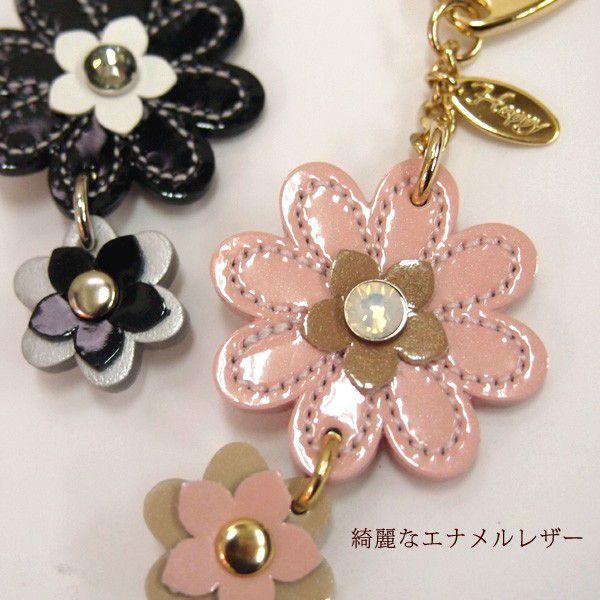 キーホルダー レディース かわいい フラワー 本革 日本製 花 チャーム キーリング ギフト カワイイ 可愛い 革