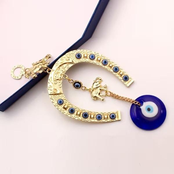 馬蹄 チャーム 風水 開運 馬 象 ゾウ モチーフ キーホルダー 邪視避け ナザールボンジュウ トルコ 幸運 ゴールド 金 お守りアクセサリー 金運アップ 厄除け