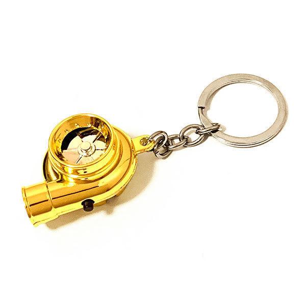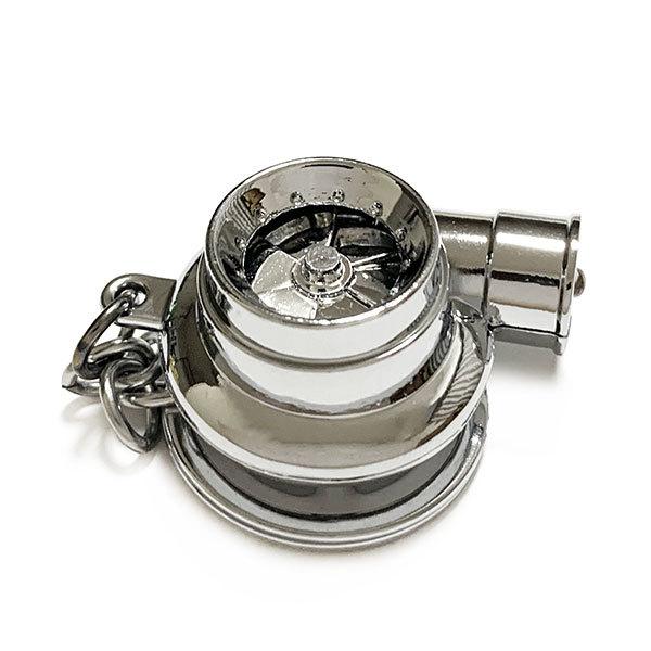 キーホルダー ターボ キーリング ストラップ タービン音付き LEDライト アクセサリー 自転車 車 バイク 家 鍵 シルバー 送料無料
