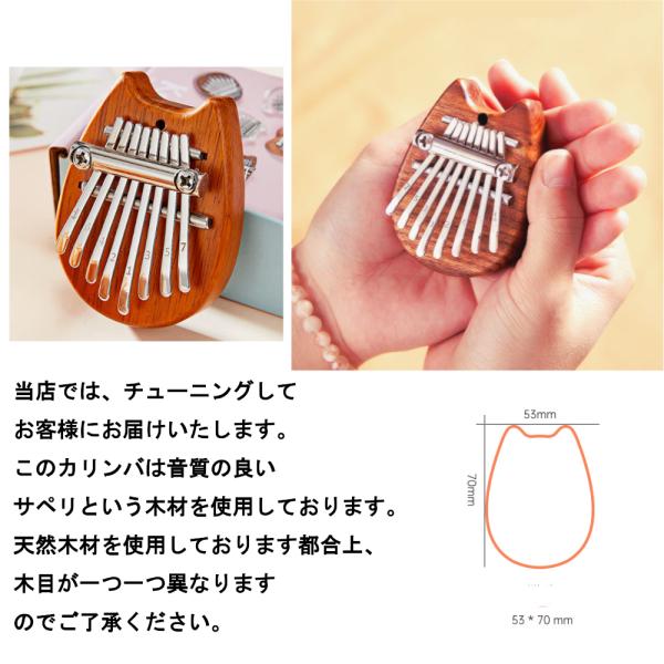 8音ミニカリンバ ストラップとチューニングハンマー付属 親指ピアノ 8キー 指ピアノ カリンバ