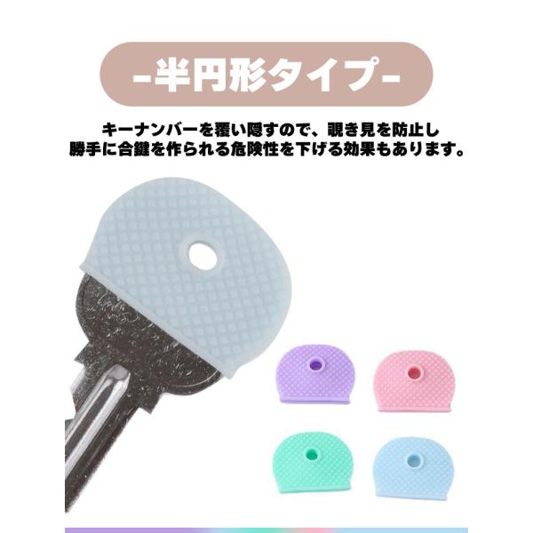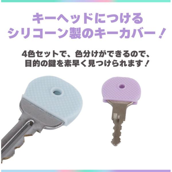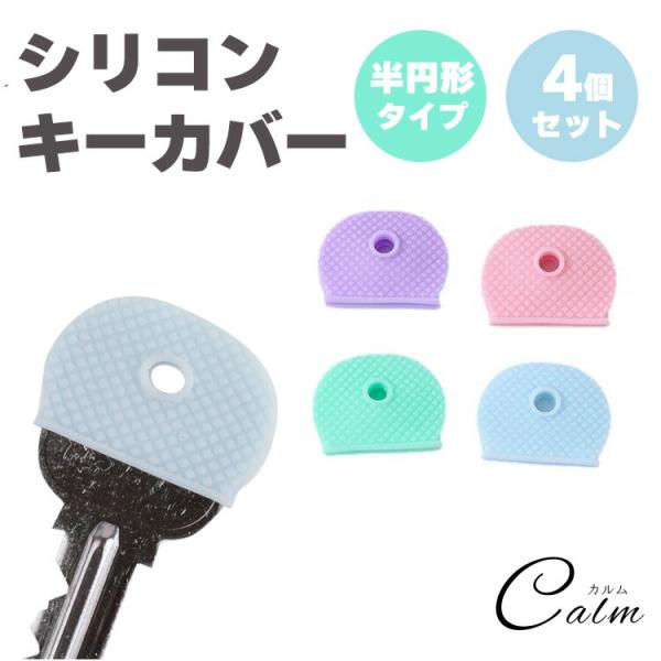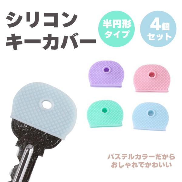 キーカバー シリコン 4色セット キーキャップ 半円形 鍵カバー パステルカラー 色 識別 整理 目印 キーカバー 装着 色分け 鍵 キャップ キートップ キーヘッド