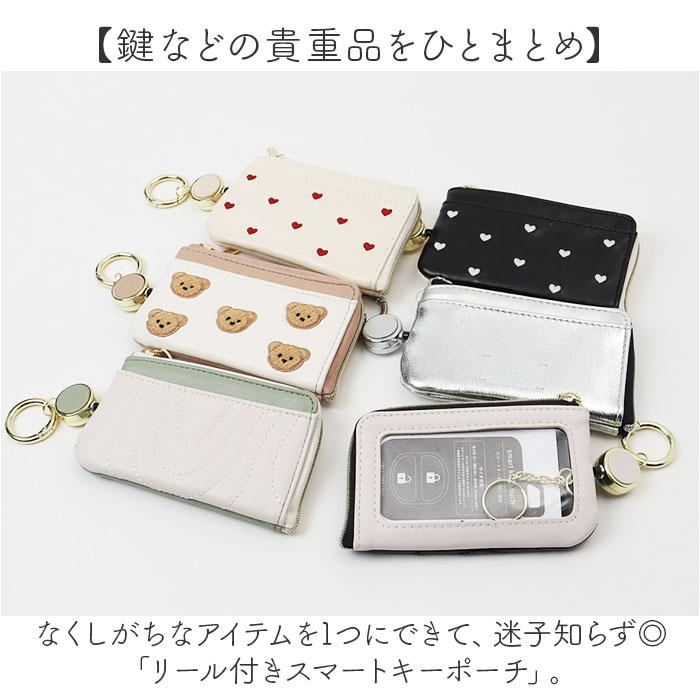 キーポーチ おしゃれ 通販 キーケース スマートキーケース スマートキーポーチ キーカバー リール付き 小物入れ コンパクト 鍵ケース 多機能 シンプル