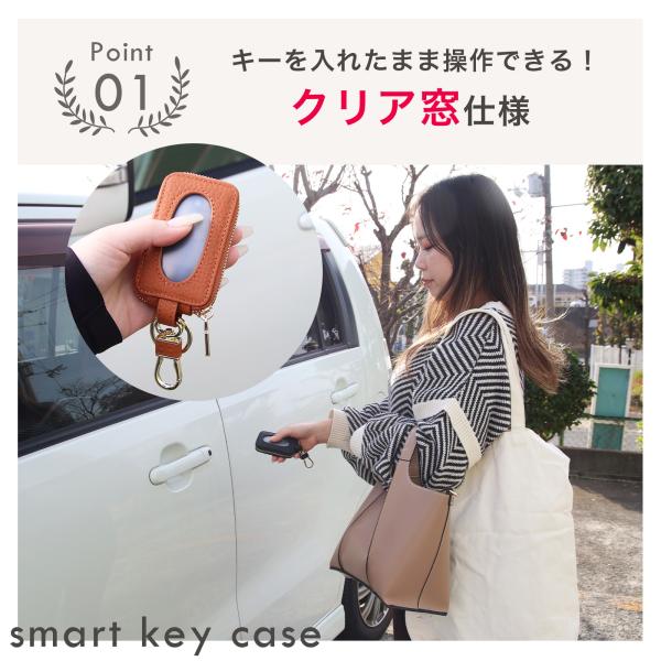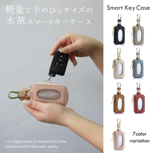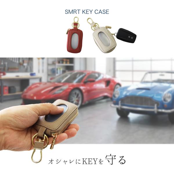 名入れ無料 スマートキーケース 本革 クリア窓でボタン操作可能 くすみカラー おしゃれ シンプル ファスナー式 車用キーケース レディース メンズ ペア ギフト