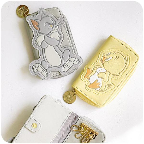 トムとジェリー タフィー クワッカー グッズ キーケース レディース FLAPPER フラッパー くすみカラー 小銭入れ付き パスケース 一体 定期入れ トムジェリ