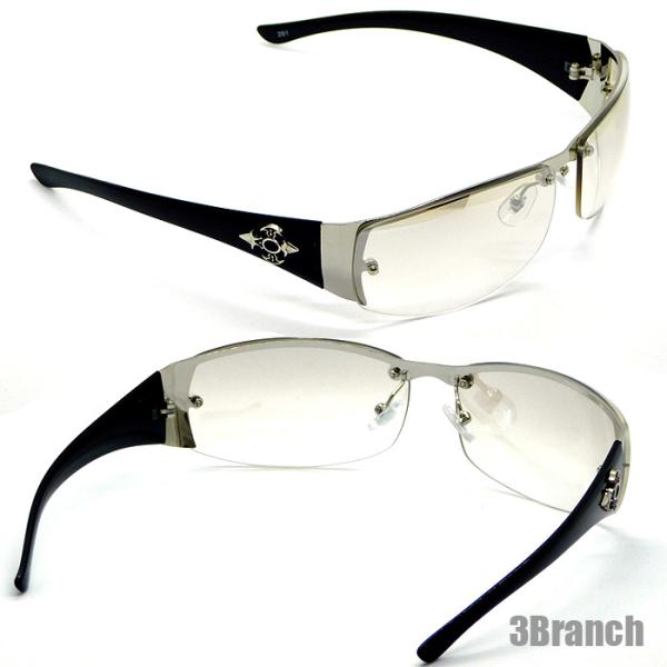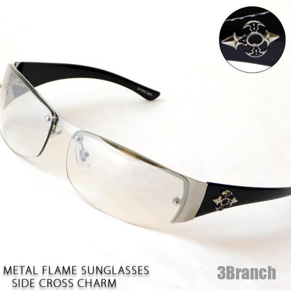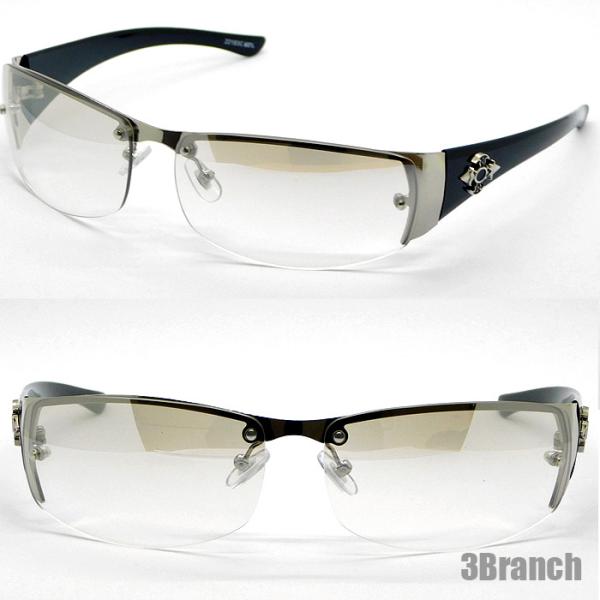 サングラス メンズ メタリックフレーム UVカット バイカーズ オラオラ系 チョイワル系 伊達メガネ バイカーズ ドライブ クリアハーフ