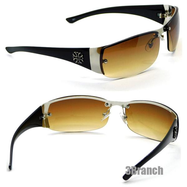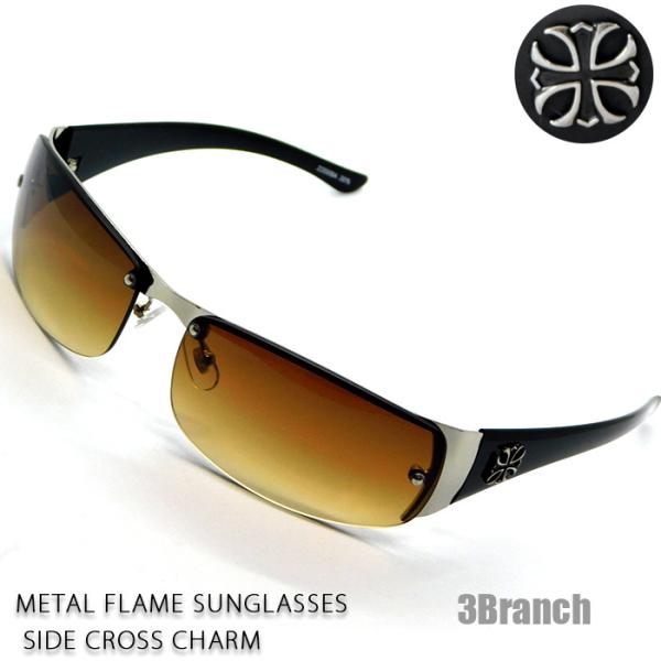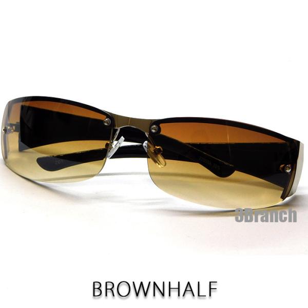 サングラス メンズ メタリックフレーム UVカット バイカーズ オラオラ系 チョイワル系 伊達メガネ バイカーズ ドライブ ブラウンハーフ