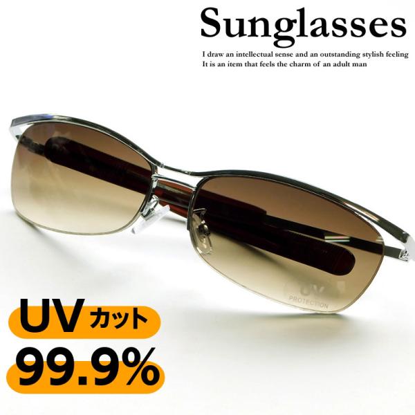 サングラス メンズ UVカット ハーフリム型 オラオラ系 チョイワル系 悪顔 強面 伊達メガネ 金融系 悪羅悪羅 ドライブ 運転 ブラウンハーフ