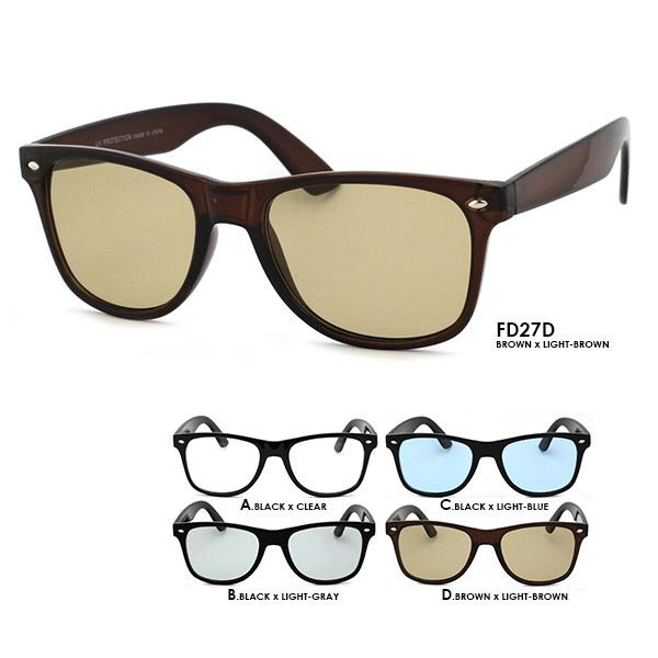 ライトカラー サングラス 伊達メガネ FD27 薄い色 大きい ウェリントン UVカット