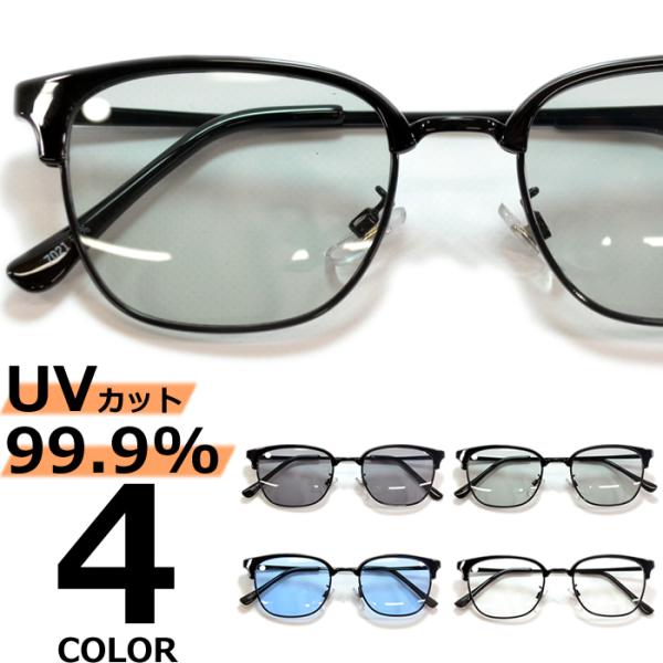 サングラス メンズ レディース UVカット 伊達メガネ ブロウ サーモント 色付き 薄い色 カラーレンズ