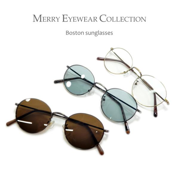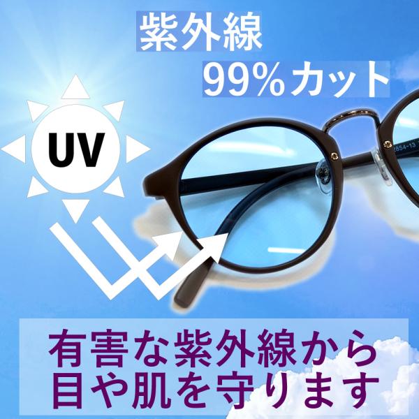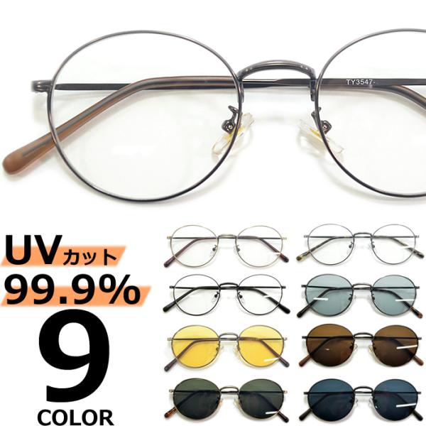 サングラス メンズ レディース UVカット 伊達メガネ ボストン 丸メガネ 色付き 薄い色 カラーレンズ