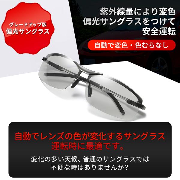 サングラス メンズ 偏光 レディース 偏光サングラス 調光 uvカット 偏光レンズ uv 調光レンズ スポーツ 50代 おしゃれ 釣り 運転 ドライブ 夜間 軽量 ゴルフ