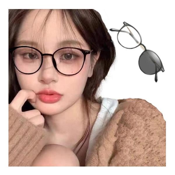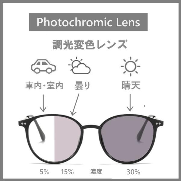 REONAS ボストン ブル―ライトカット + 調光 変色 メガネ レディース ファッション サングラス メタルアーム UV400 女優 小顔効果 運転用 旅行 外出 ボストン2