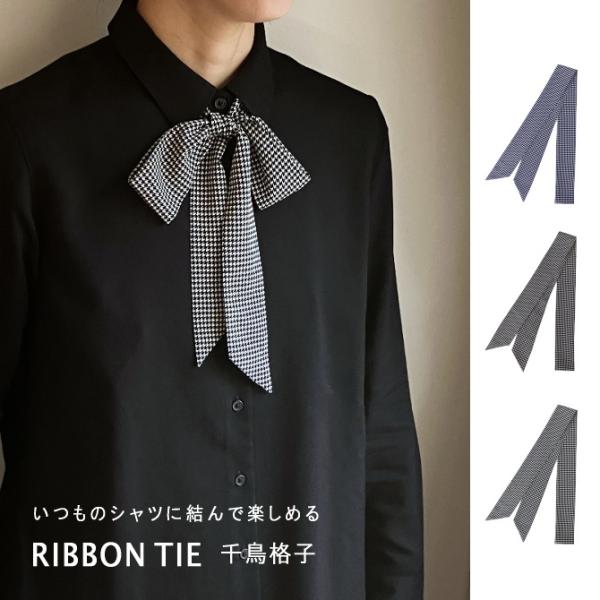 スカーフ メンズ レディース リボンタイ ボウタイ ナロー 千鳥格子 チェック 柄 5cm幅 手結び 日本製 メール便配送 dplus arts