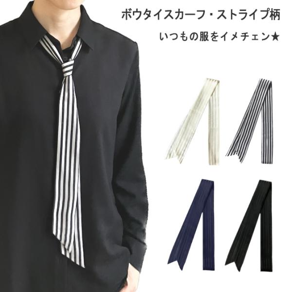 スカーフ メンズ レディース リボンタイ ボウタイ ナロー ストライプ柄 5cm幅 日本製 メール便 dplus arts