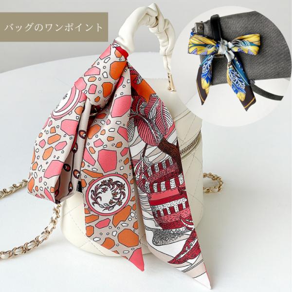 スカーフ レディース バッグスカーフ カバンスカーフ リボンスカーフ 小さめ オシャレ 可愛い 持ち手保護 ツイリー カレスカーフ 細目 細長 四角 バックスカーフ