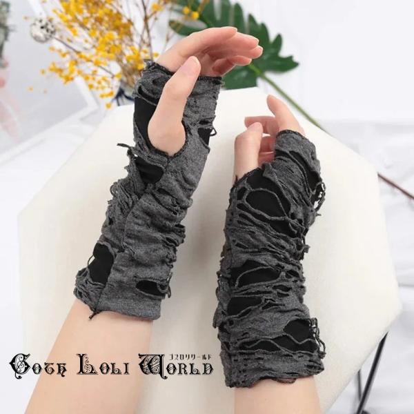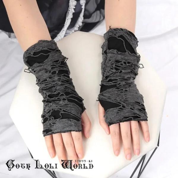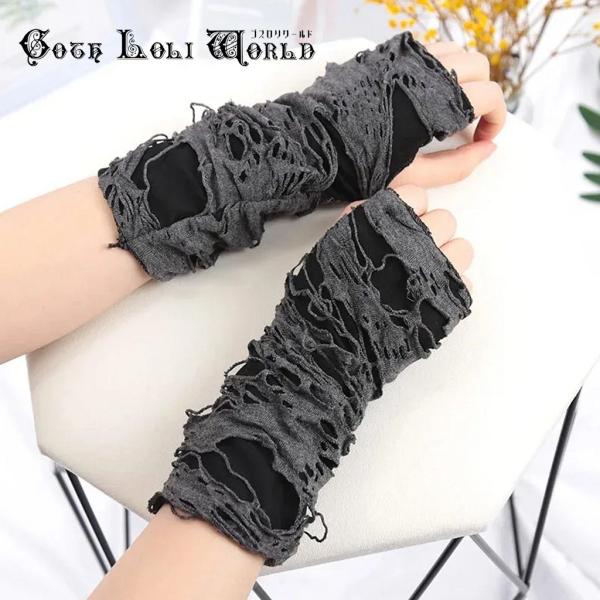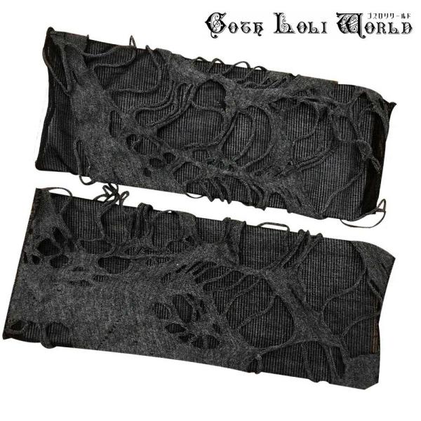 ゴスロリワールド GE100CE ダメージ加工アームウォーマー グレー色 男女兼用 メンズ レディース ファッション ゴシック ゴスロリ パンク ビジュアル系 V系