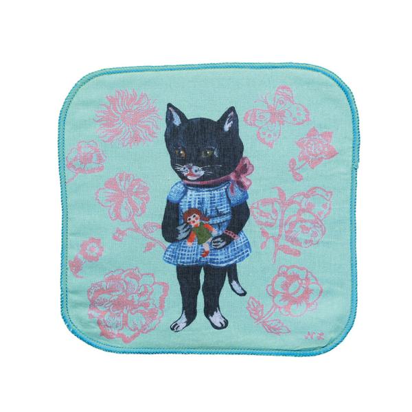 ナタリー・レテ ガーゼ・ハンド・タオル ブラック・キャット 黒猫・ミッツィのタオルハンカチ