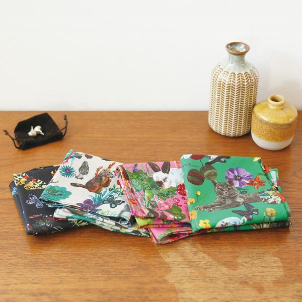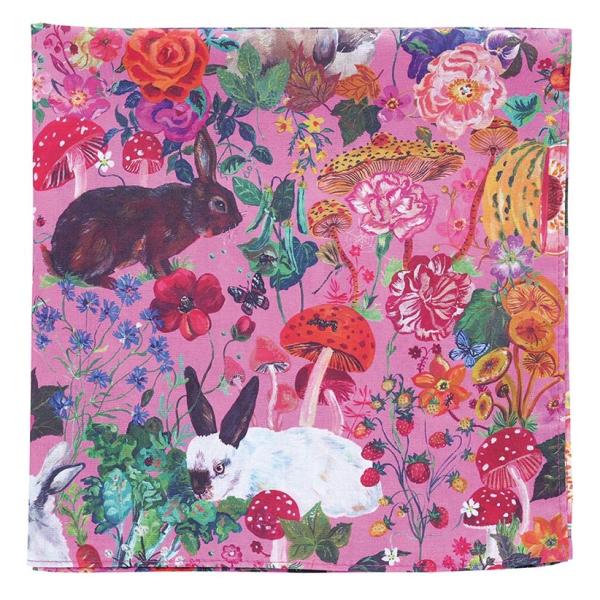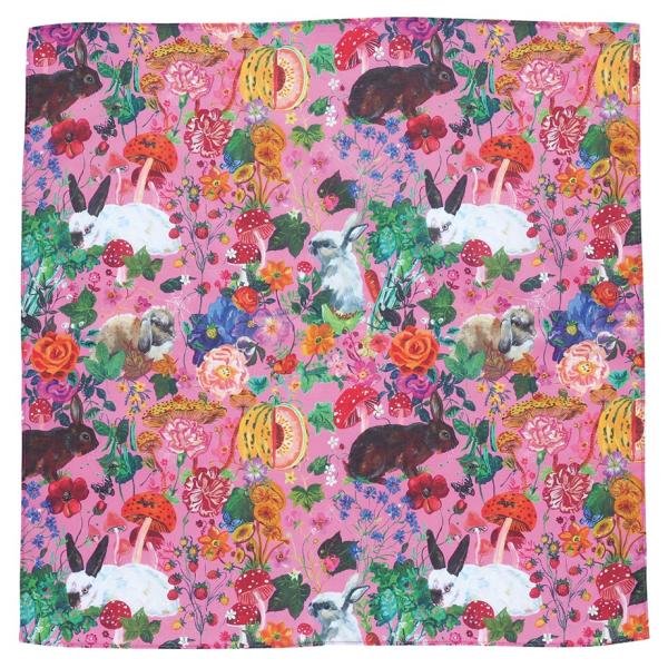 ナタリー・レテ ラージ・ハンカチ ラビッツ ウサギたちと花々のミニ・コットンスカーフ